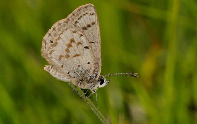 The Midlands' grasslands also hold really rare and unique butterflies. South Africa's grasslands are second only to the fynbos in numbers of rare endemic species, and those of the Drakensberg foothills, up into the escarpments near the Tugela Valley, are particularly special. In springtime, the veld lights up brilliant green with innumerable flowers. Among these, you can see the Ant Blues of the genus Lepidochrysops, whose caterpillars live inside ants' nests where they prey on the brood.
